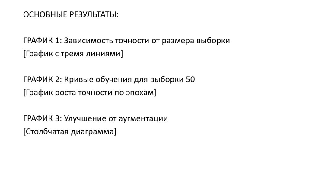 • Подтверждена эффективность аугментации на малых данных