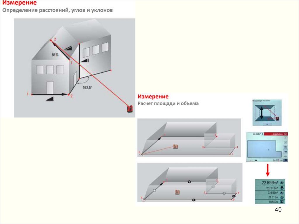 • Определение вертикальности стен и конструкций