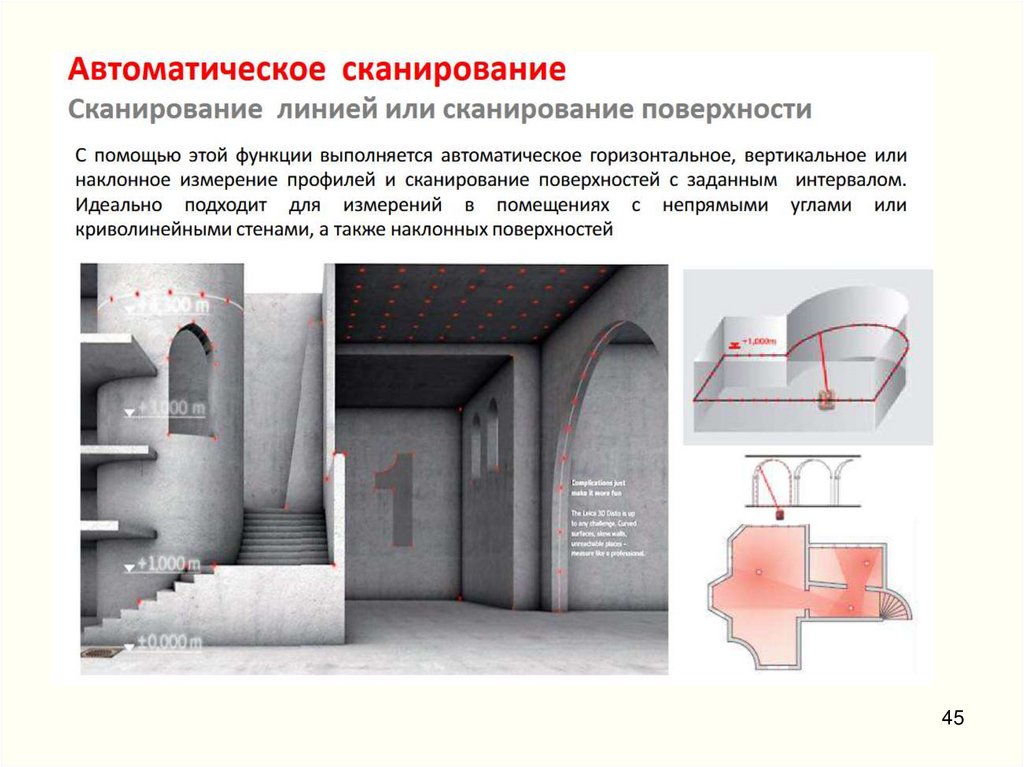 выполнение обмерных работ (съёмки) помещений со сложной архитектурой;