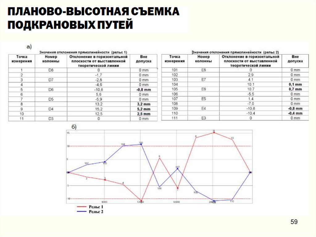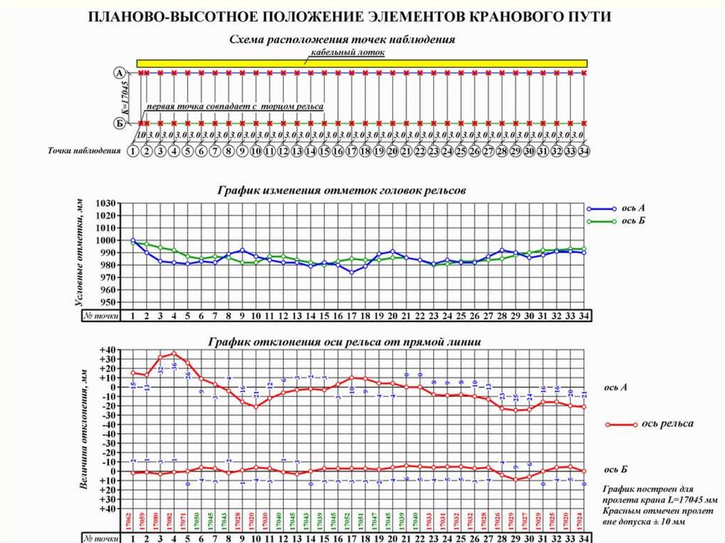6. измерение отклонений элементов крановых путей от проектного положения в плане