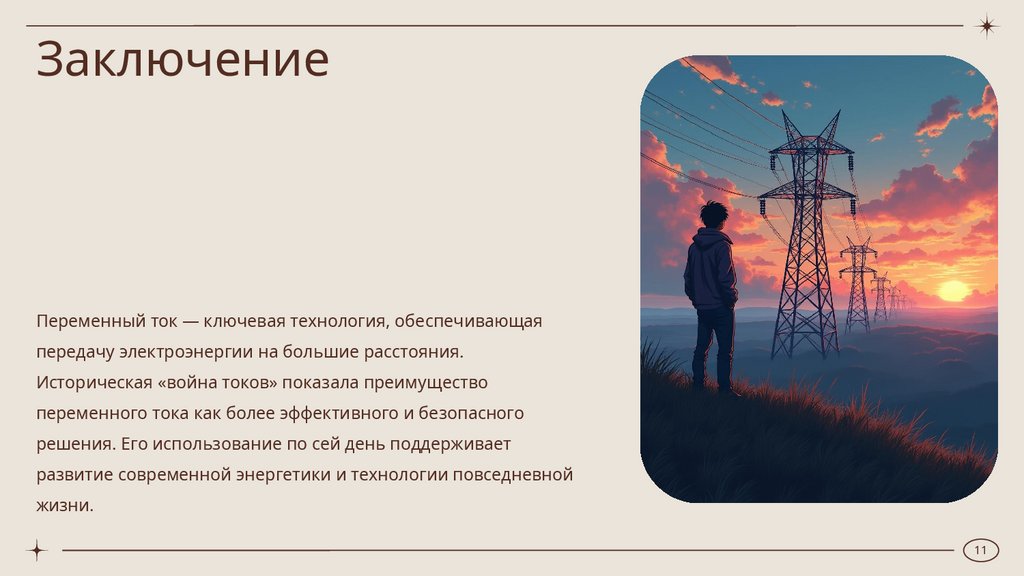 ЗаключениеПеременный ток — ключевая технология, обеспечивающая