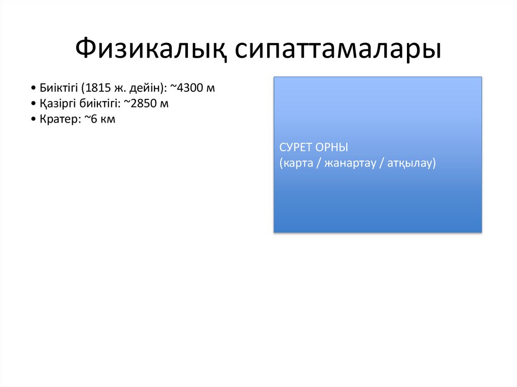 Физикалық сипаттамалары• Биіктігі (1815 ж. дейін): ~4300 м