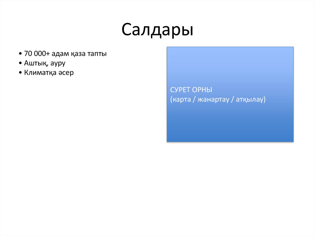 Салдары• 70 000+ адам қаза тапты