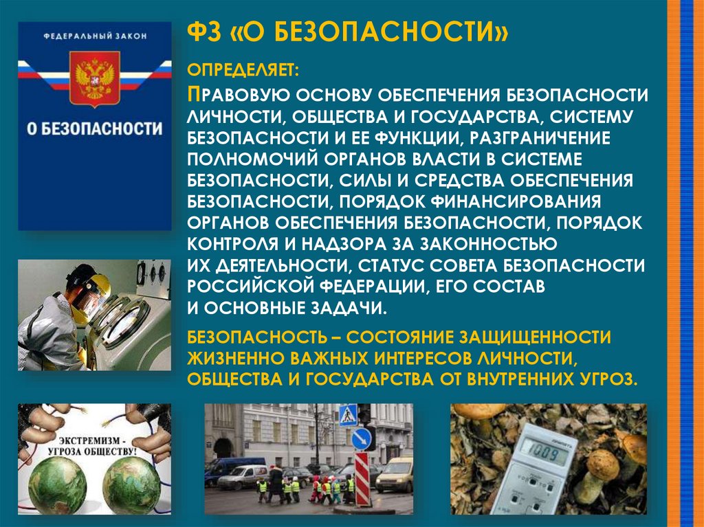 ФЗ «О БЕЗОПАСНОСТИ»ОПРЕДЕЛЯЕТ: