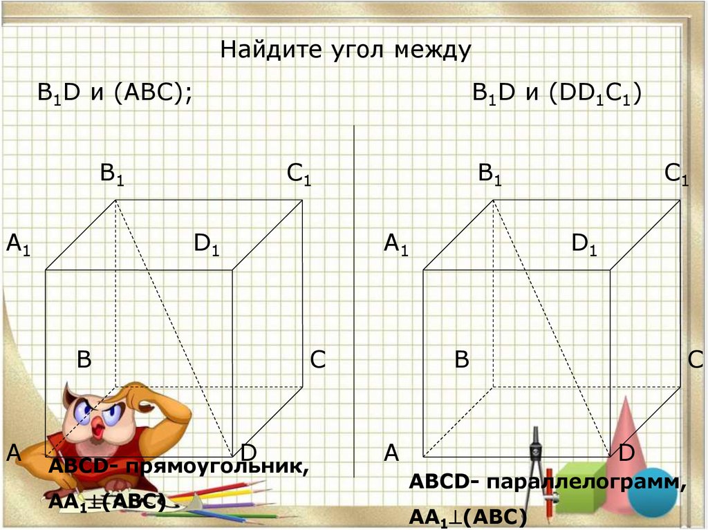 1. Урок геометрии в 10 классе на тему «Угол между прямой и плоскостью»