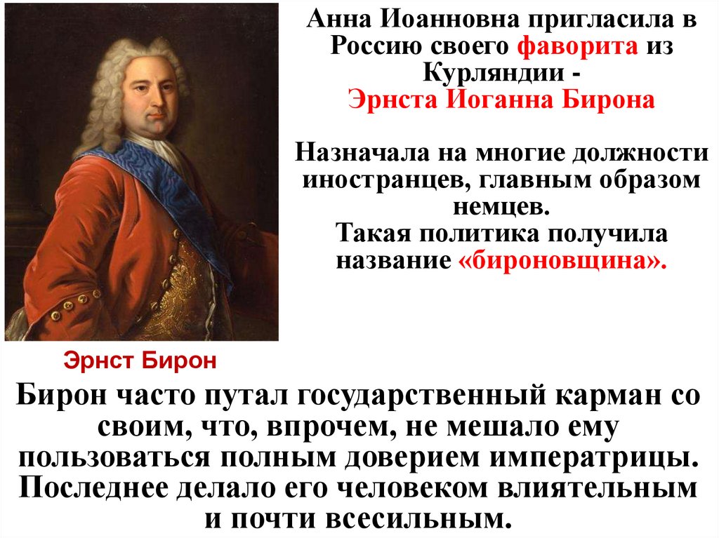 Характерные черты бироновщины - засилье
