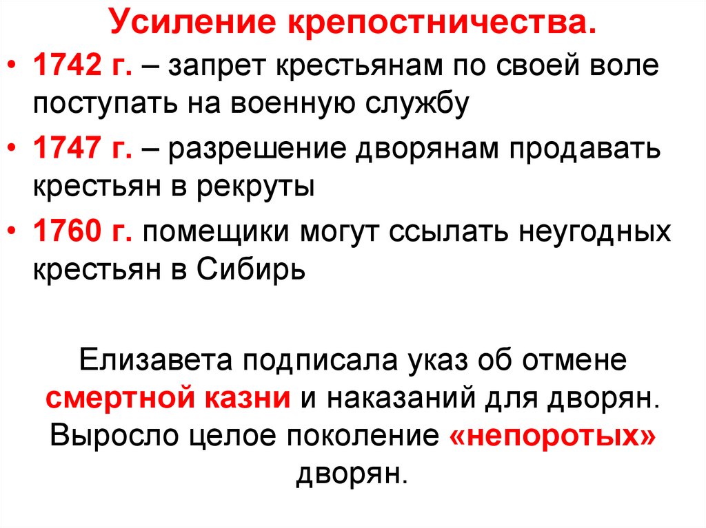 Последствия указа 1722 года:1. Прерван естественный для