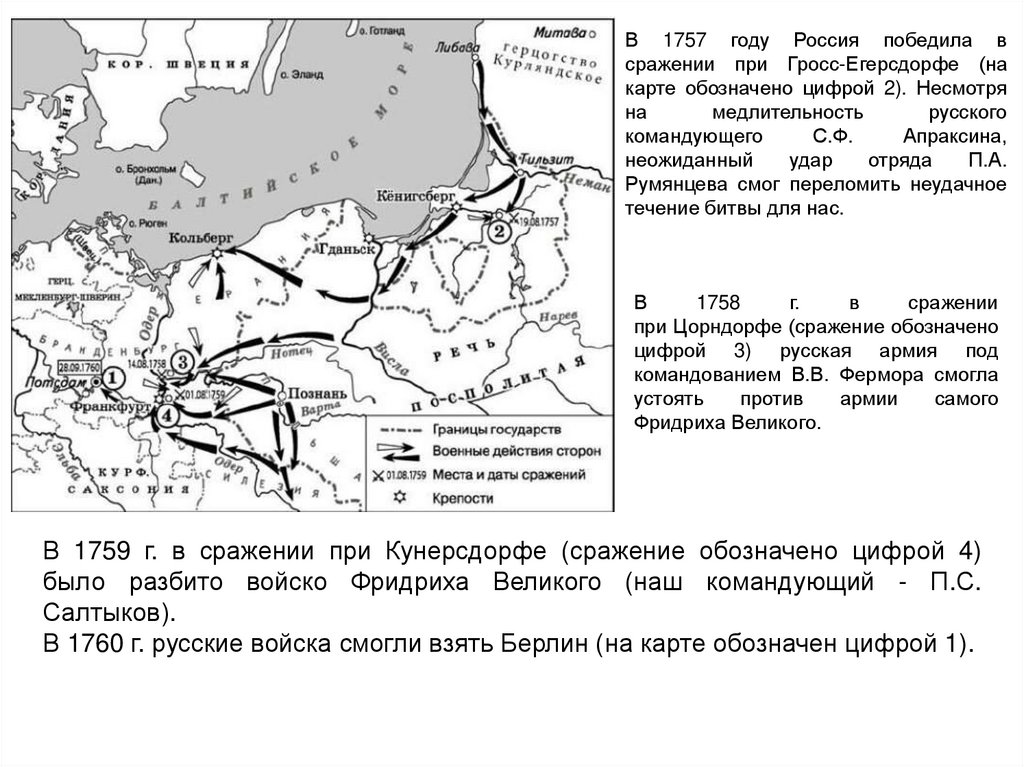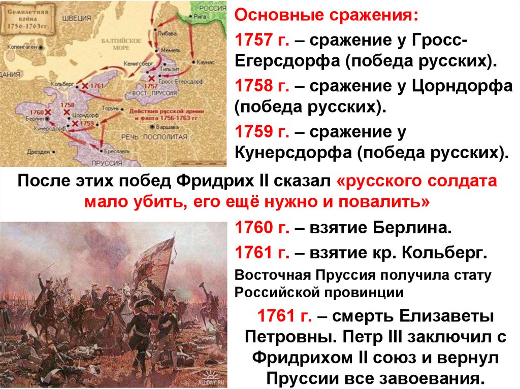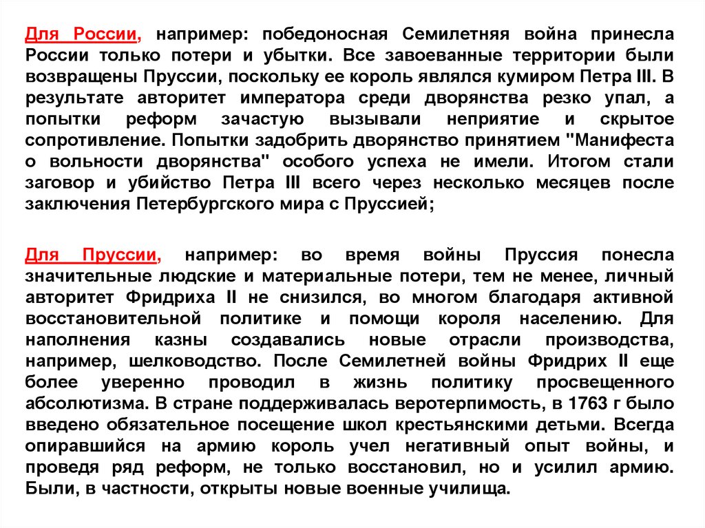 Аргумент для России: Россия вела успешныенаступления на Пруссию, но после смерти Елизаветы