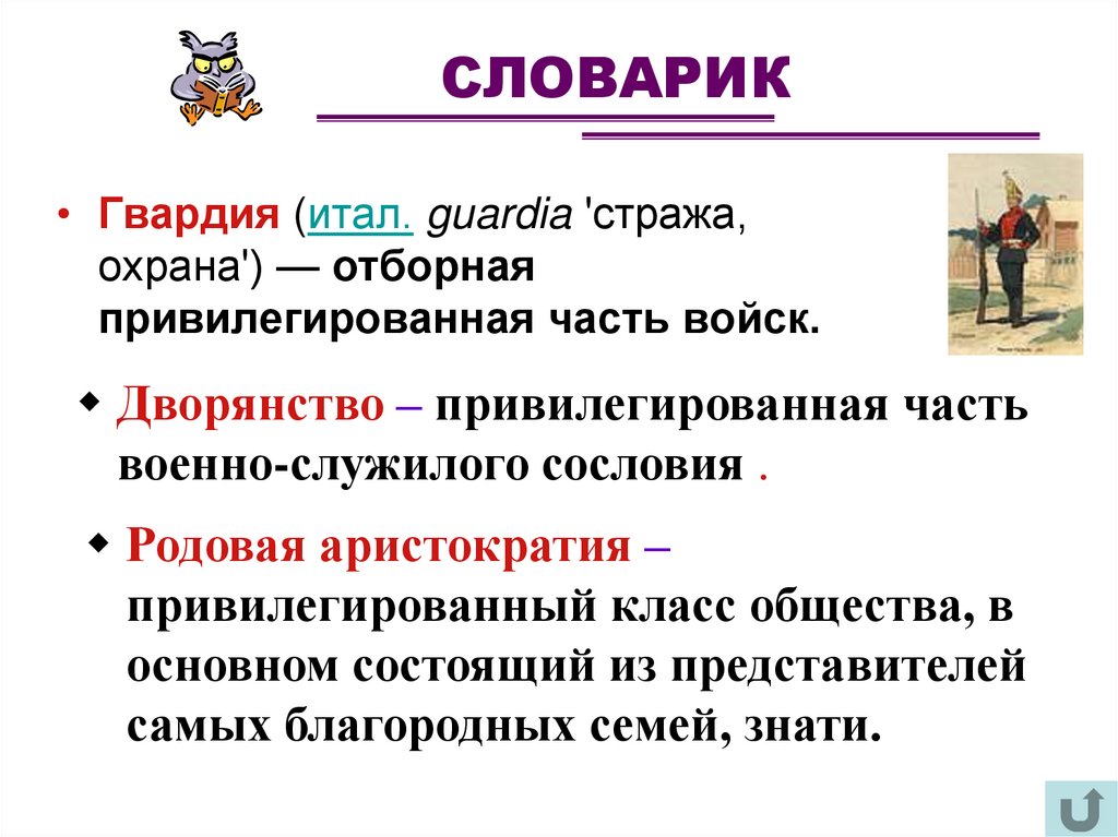 высшей знати и гвардии.