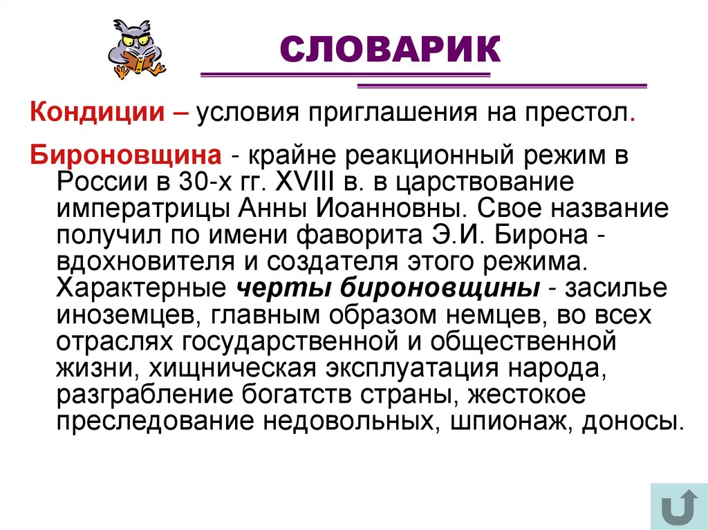 СЛОВАРИККондиции – условия приглашения на престол.