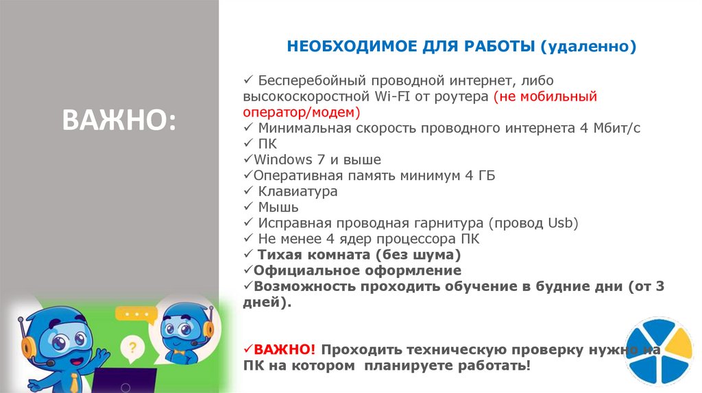 НЕОБХОДИМОЕ ДЛЯ РАБОТЫ (удаленно)ВАЖНО: