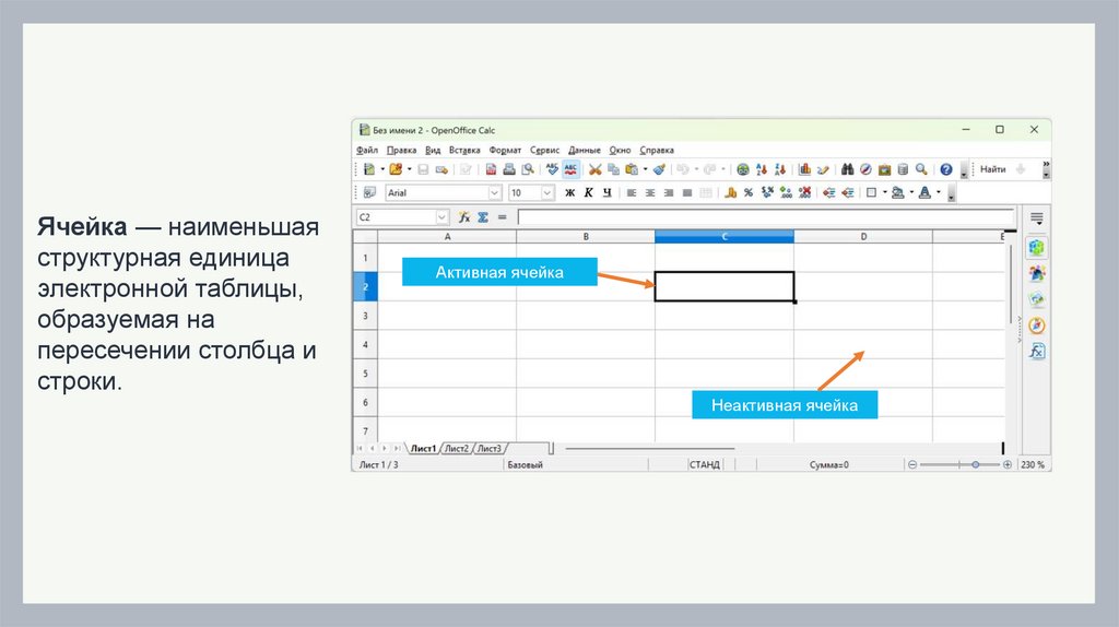 электронной таблицы,