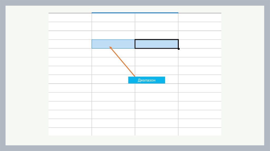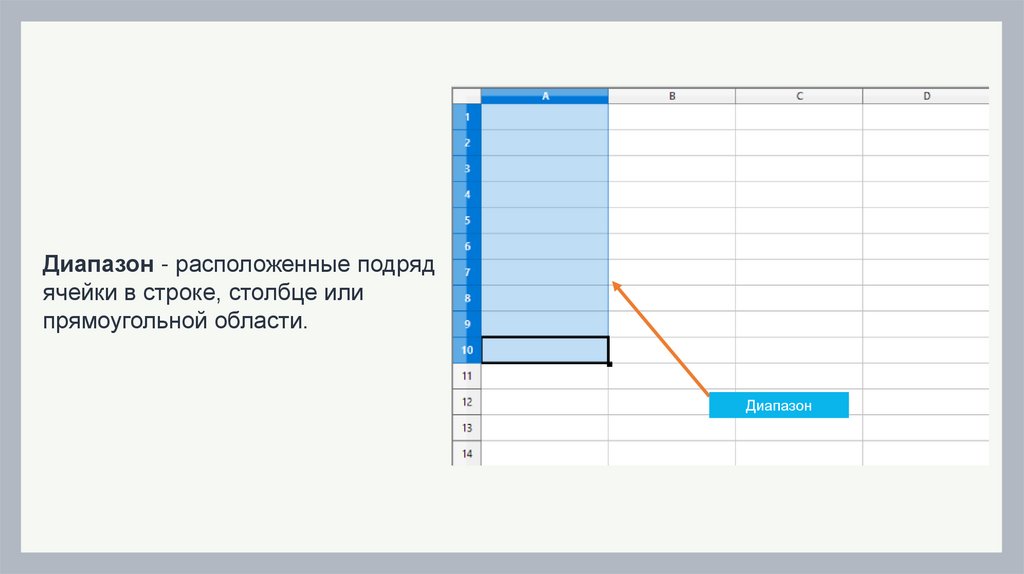 Диапазон - расположенные подрядячейки в строке, столбце или