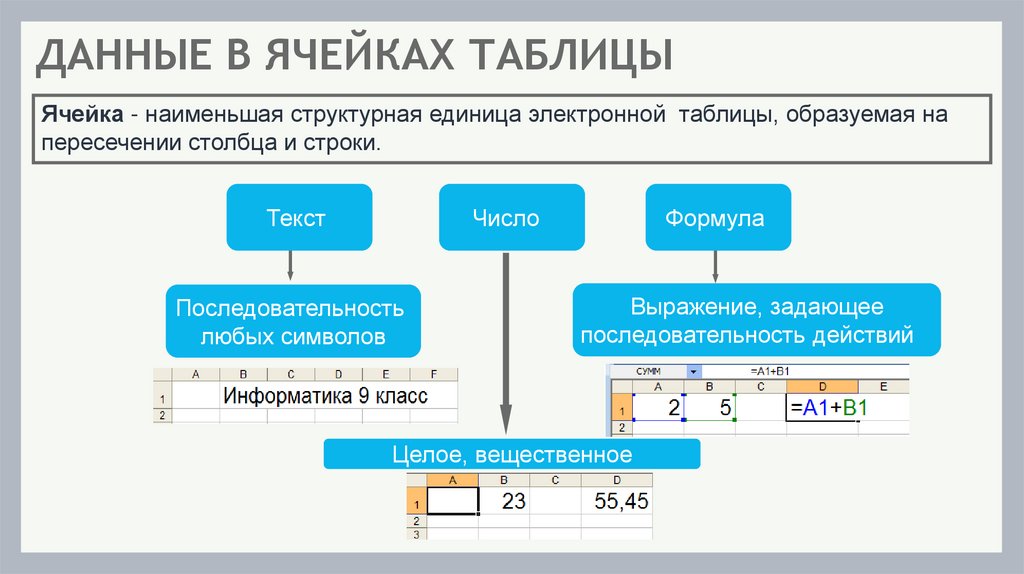 Данные каких типов могут быть занесены в ячейку ЭТ?42. ВОПРОСЫ И ЗАДАНИЯ