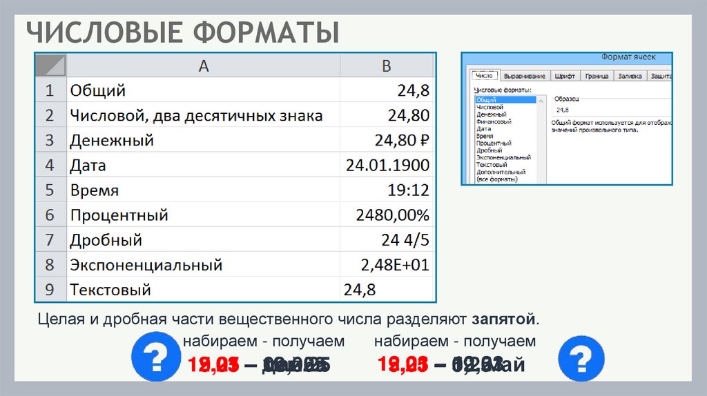 Какие существуют особенности ввода числовых значений в ЭТ?43. ВОПРОСЫ И ЗАДАНИЯ