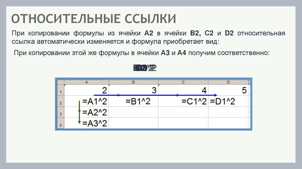 В чём суть принципа относительной адресации в ЭТ? Чтопроисходит при копировании формул, содержащих