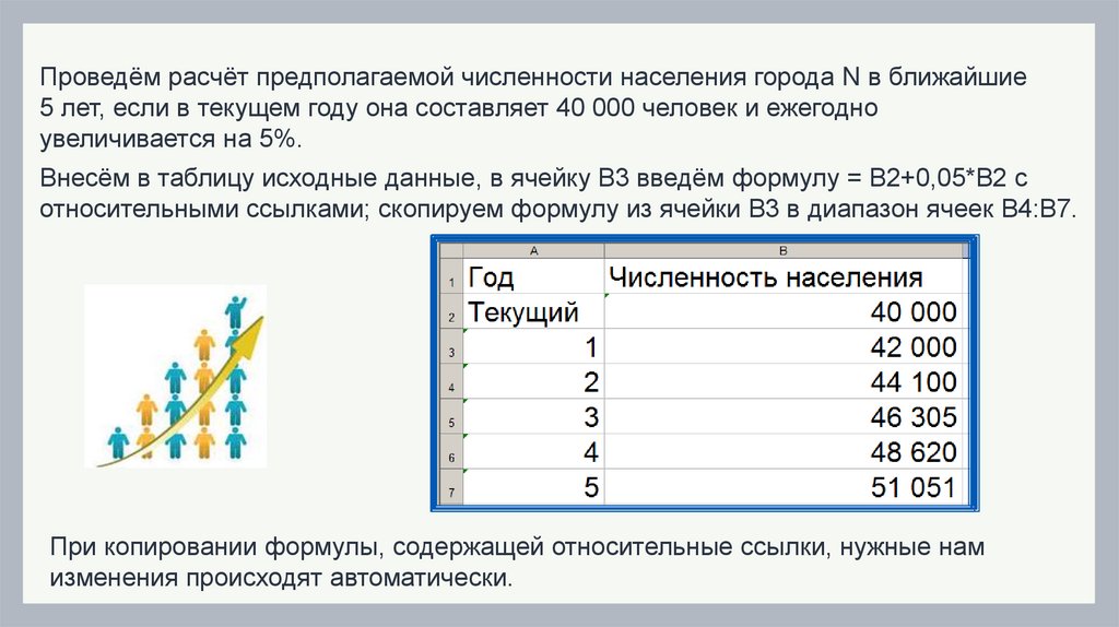 населения. Введите в соответствующие ячейки формулы для вычисления: