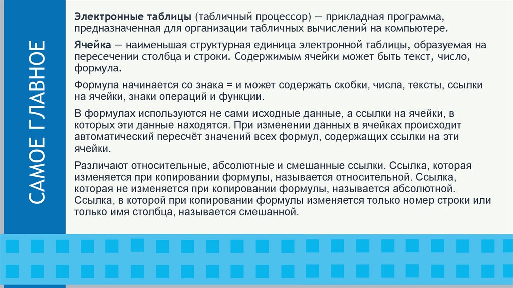ЭЛЕКТРОННЫЕ ТАБЛИЦЫ2. КЛЮЧЕВЫЕ СЛОВА
