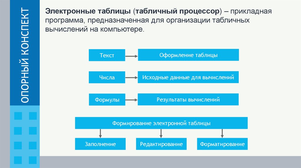 ОПОРНЫЙ КОНСПЕКТЭлектронные таблицы (табличный процессор) – прикладная