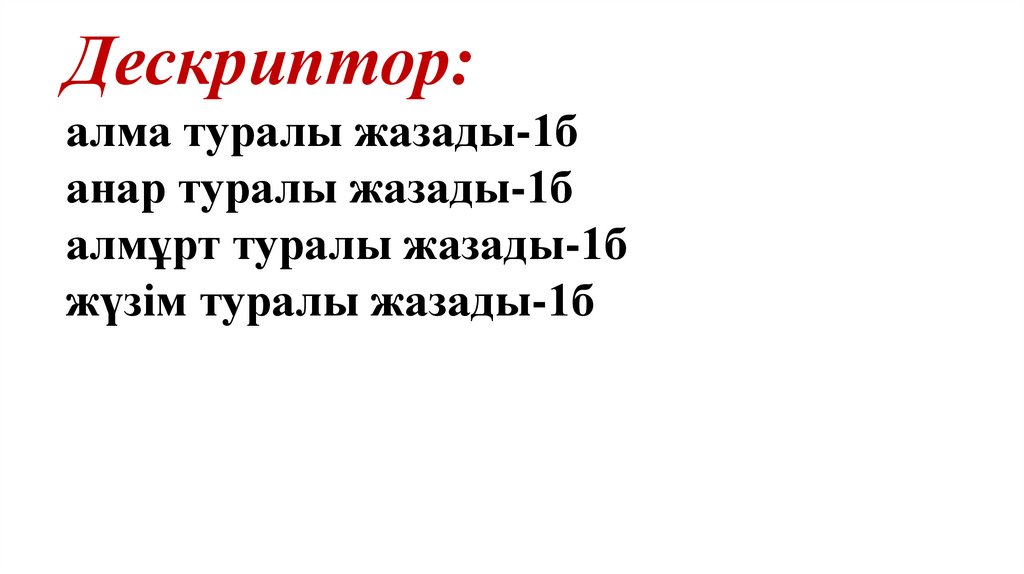 Дескриптор:алма туралы жазады-1б