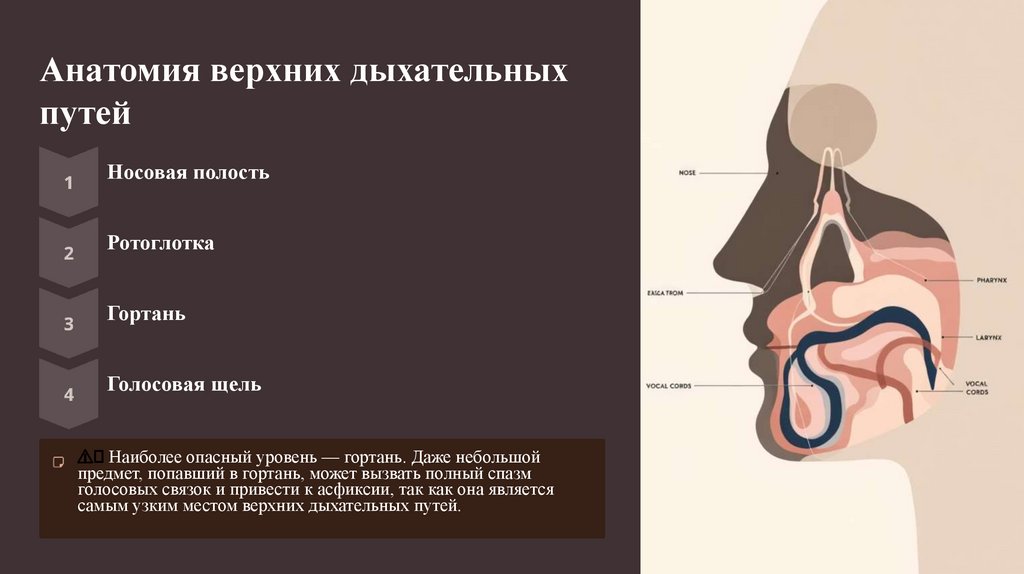 ⚠ Наиболее опасный уровень — гортань. Даже небольшой