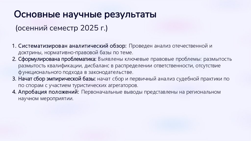 Основные научные результаты(осенний семестр 2025 г.)