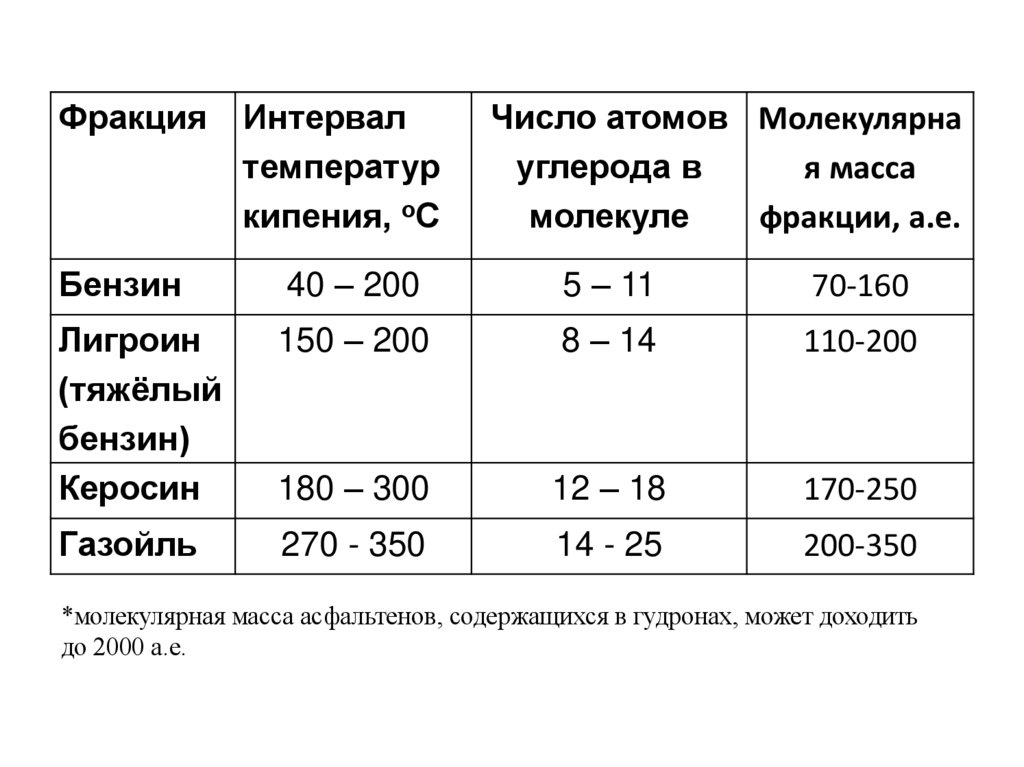 *молекулярная масса асфальтенов, содержащихся в гудронах, может доходить