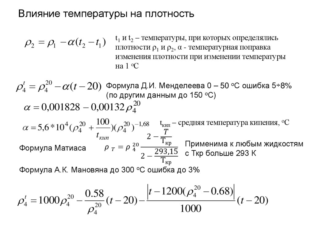 • Температуры определения плотности регламентируются. В