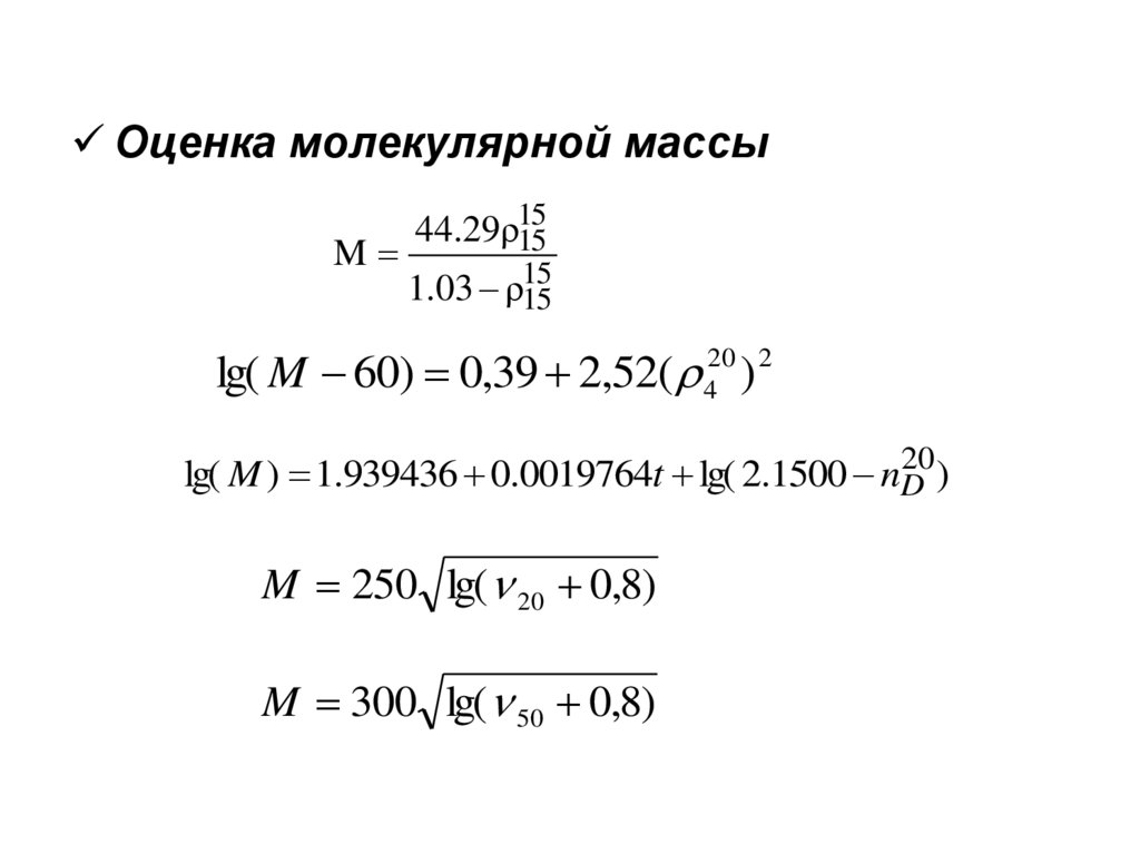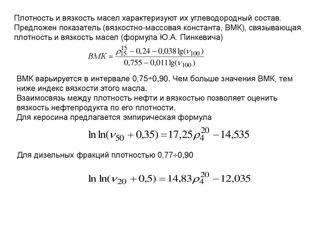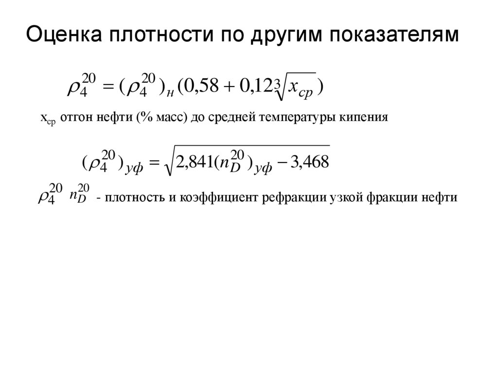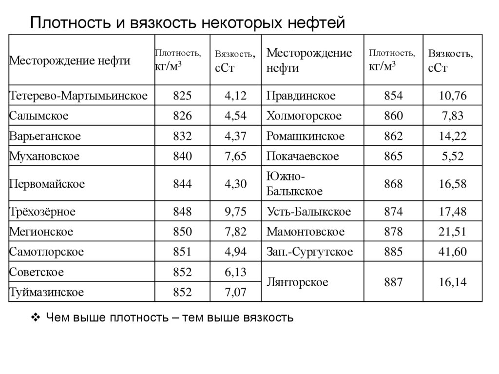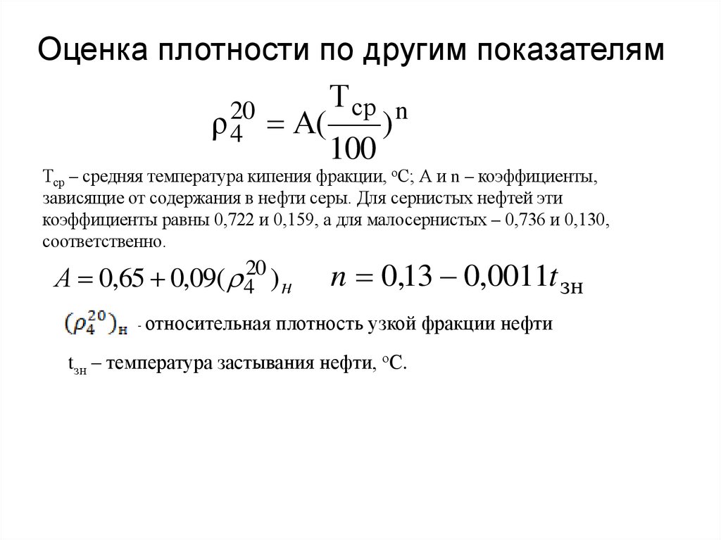 • Одна из важнейших характеристик нефти и нефтепродуктов. Позначению плотности можно судить о химической природе