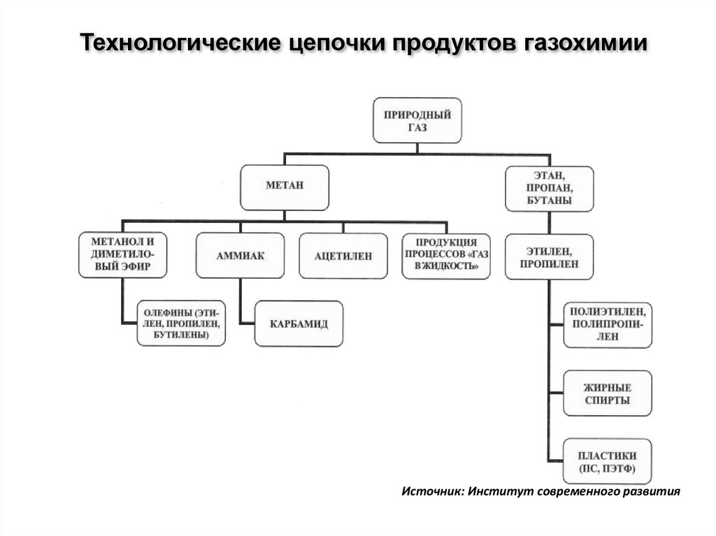 Технологические цепочки продуктов газохимииИсточник: Институт современного развития