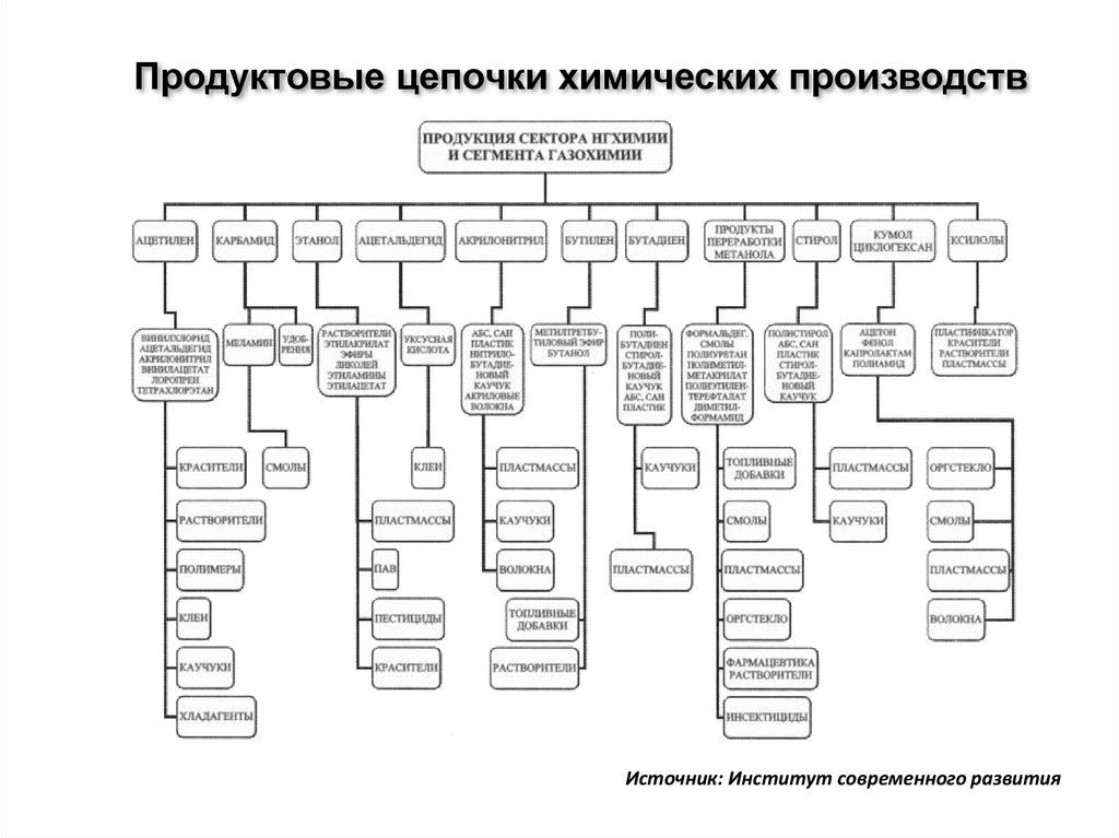 Продуктовые цепочки химических производствИсточник: Институт современного развития