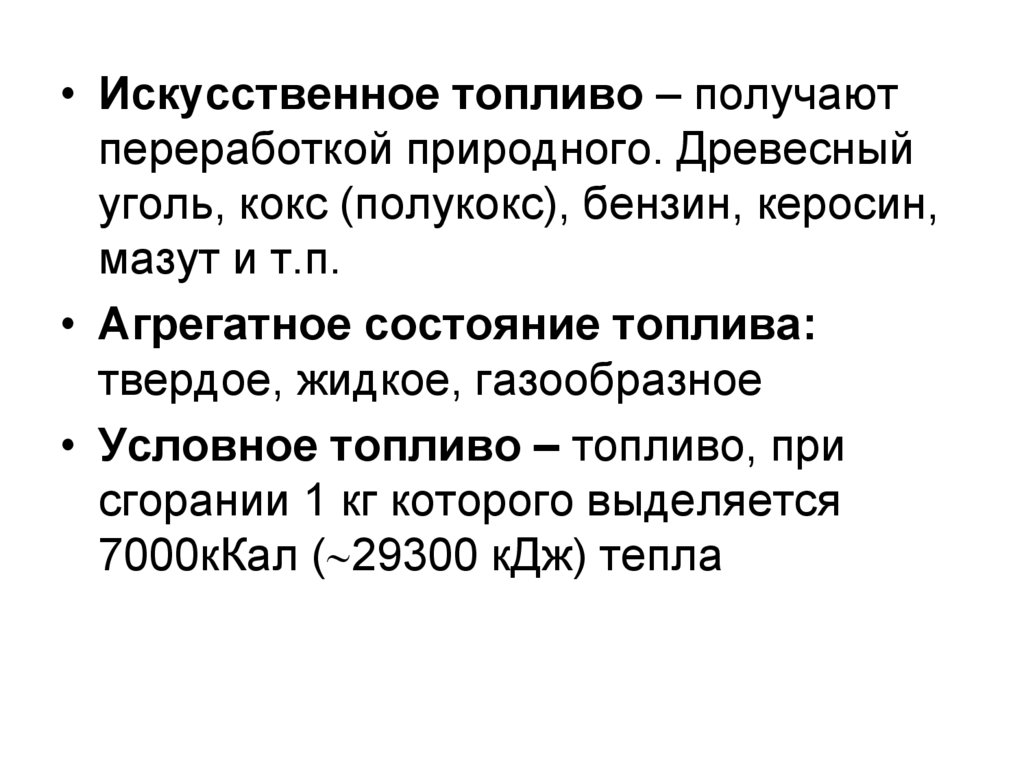 • Условное топливо – топливо, при