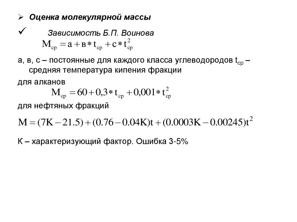 Средняя (средняя молекулярная) температуракипения фракции