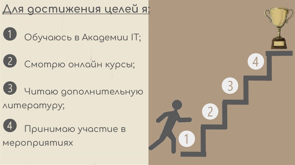 Для достижения целей я:➊ Обучаюсь в Академии IT;