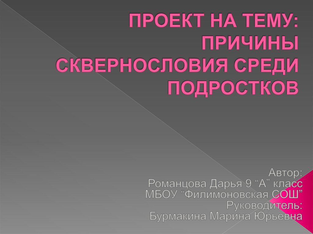1. ПРОЕКТ НА ТЕМУ: ПРИЧИНЫ СКВЕРНОСЛОВИЯ СРЕДИ ПОДРОСТКОВ