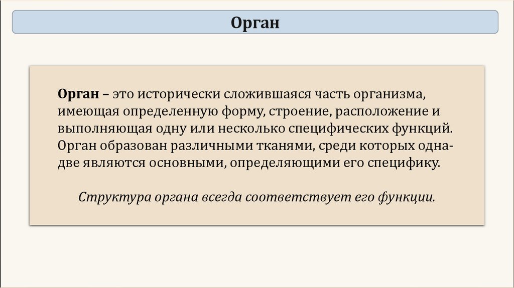 Орган образован различными тканями, среди которых однадве являются основными, определяющими его специфику.