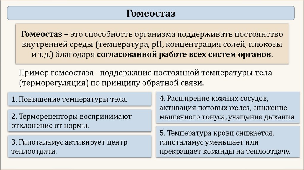 ГомеостазГомеостаз – это способность организма поддерживать постоянство