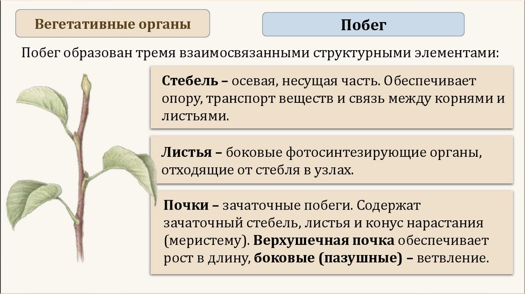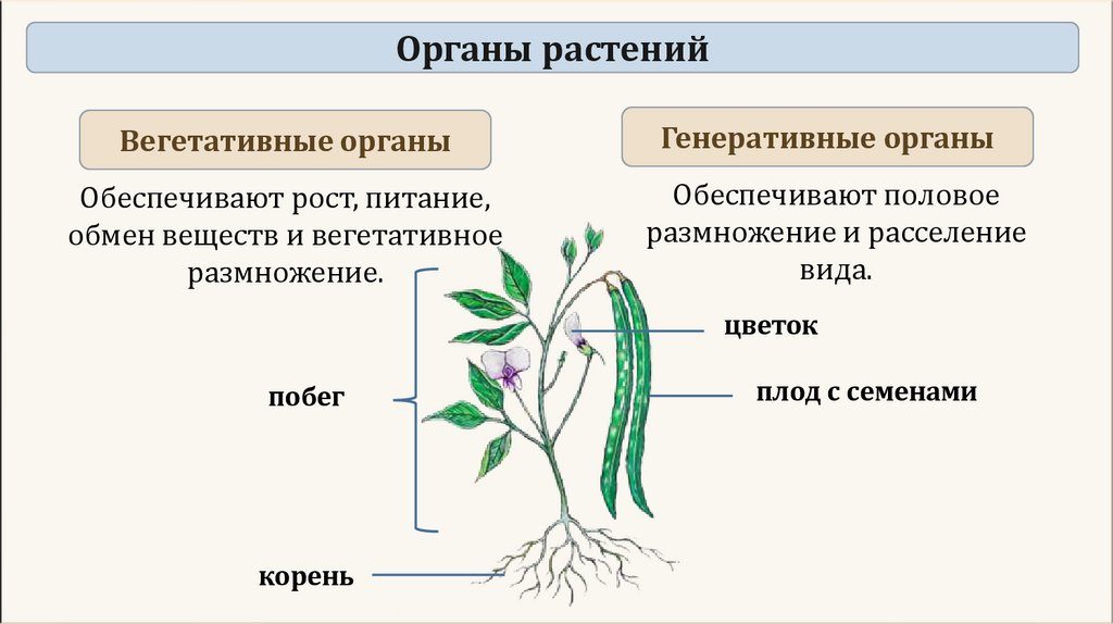 У растений выделяют вегетативные органы, обеспечивающие рост и обмен