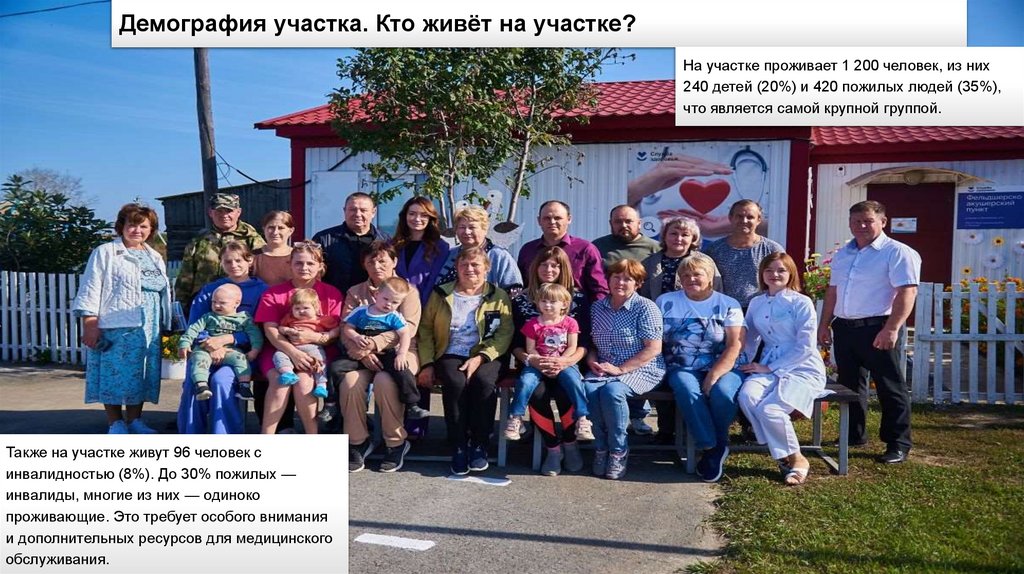Демография участка. Кто живёт на участке?На участке проживает 1 200 человек, из них