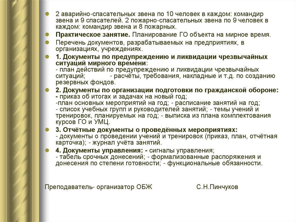 Практическое занятие. Планирование ГО объекта на мирное время.
