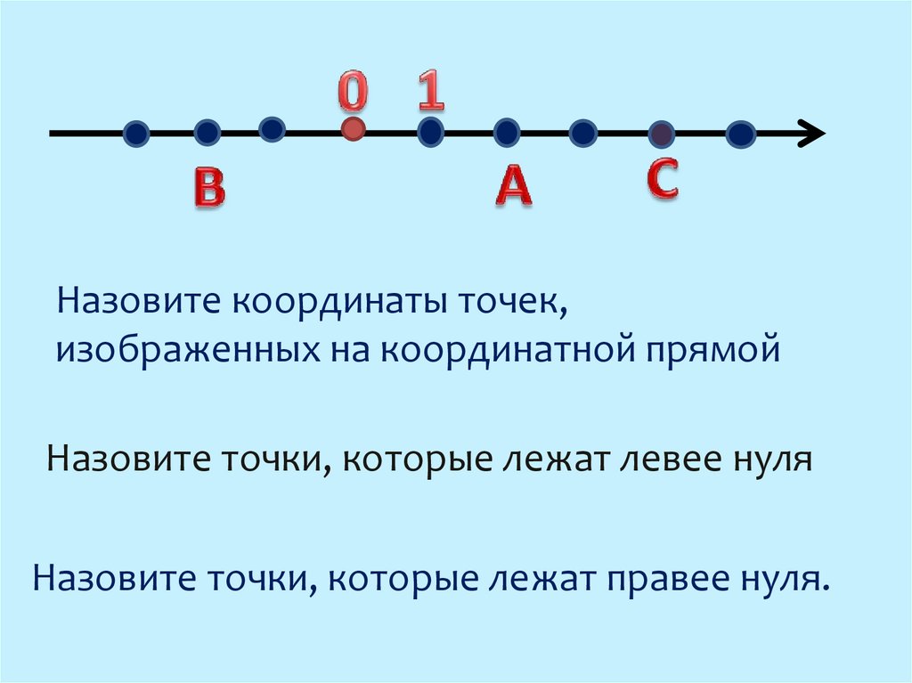 2. Точки с какой координатой лежит левее точки О(0), какая
