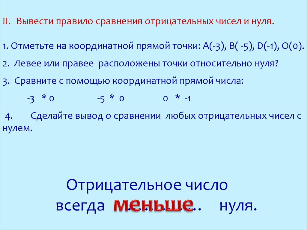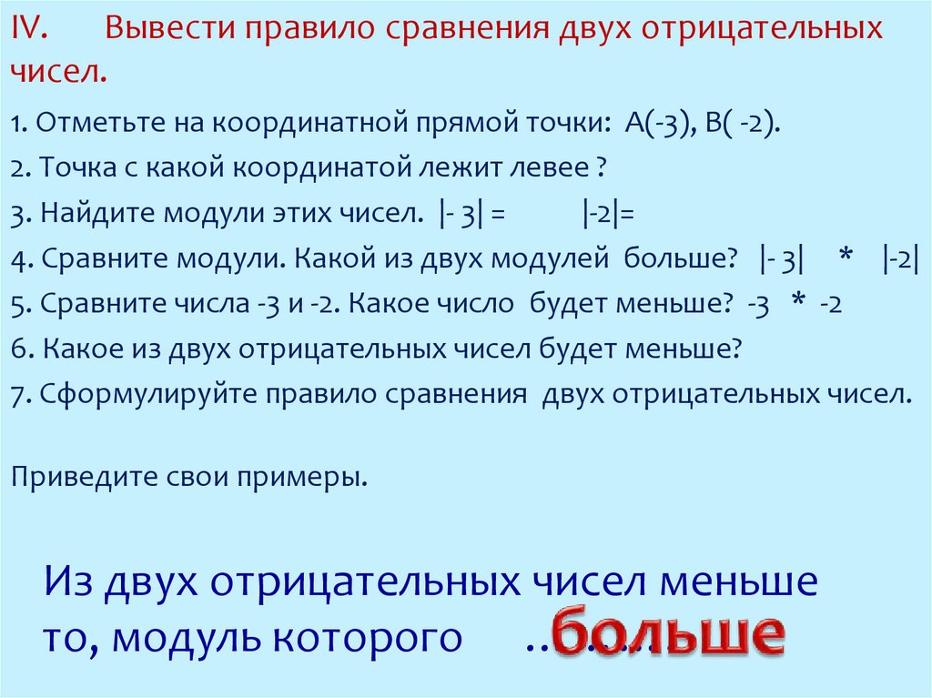IV. Вывести правило сравнения двух отрицательныхчисел.