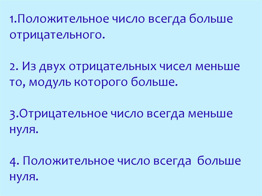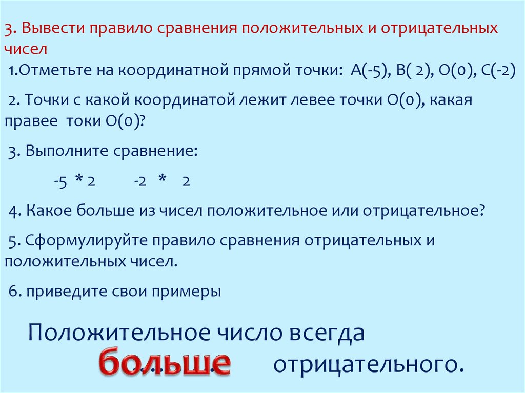 3. Вывести правило сравнения положительных и отрицательныхчисел
