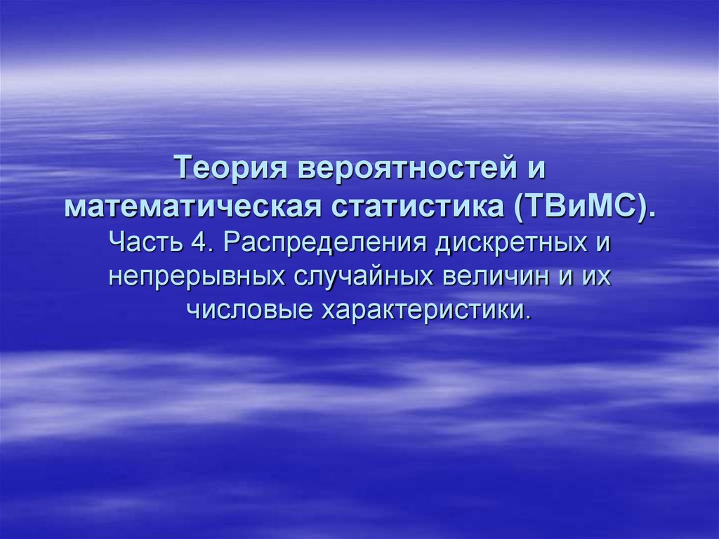 1. Теория вероятностей и математическая статистика (ТВиМС). Часть 4. Распределения дискретных и непрерывных случайных величин и их