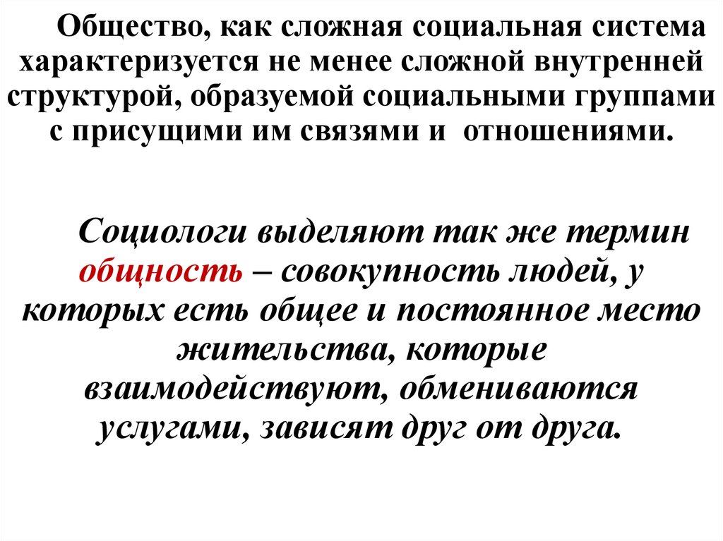 Социальная общность — это совокупность индивидов,объединенных одинаковыми условиями