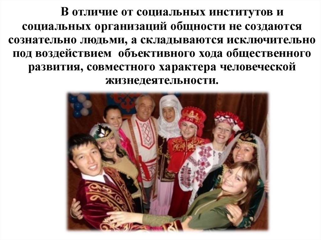 В отличие от социальных институтов исоциальных организаций общности не создаются