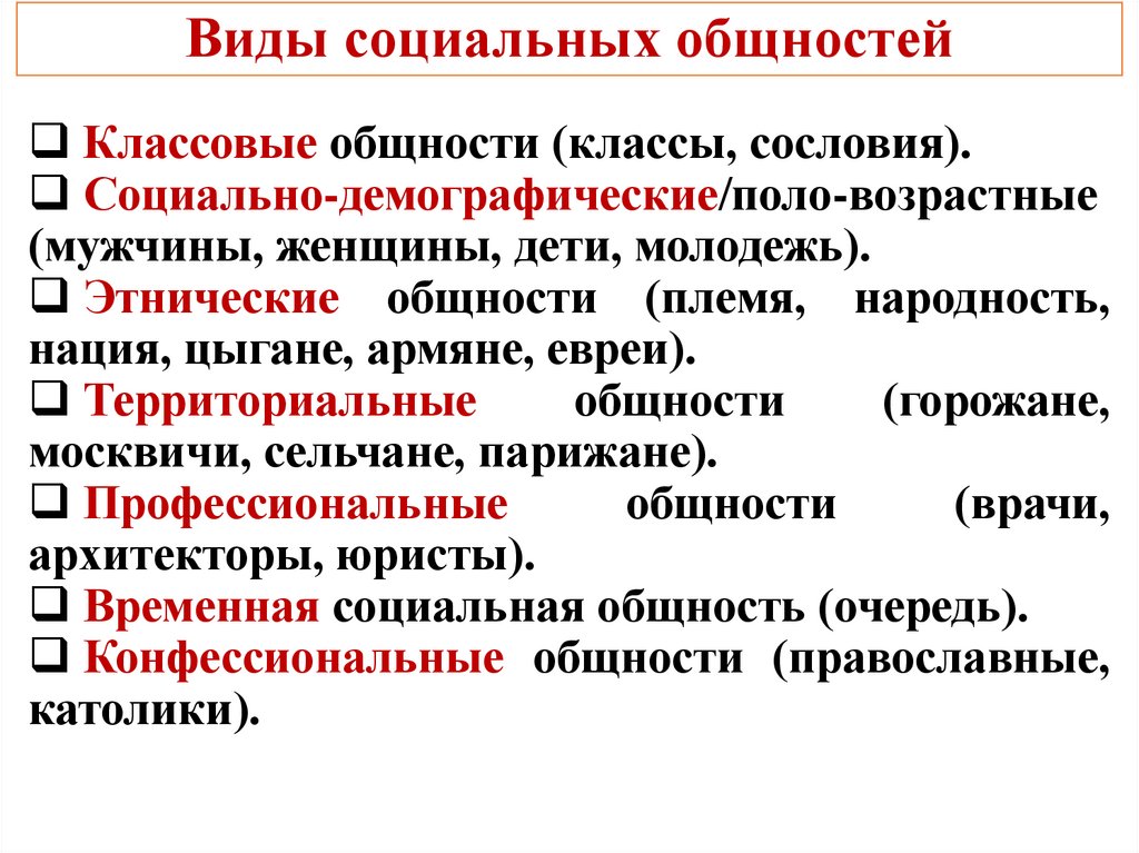Виды социальных общностейКлассовые общности (классы, сословия).
