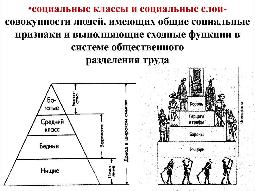 •социальные классы и социальные слоисовокупности людей, имеющих общие социальныепризнаки и выполняющие сходные функции в
