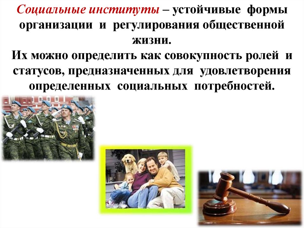 Социальные институты – устойчивые формыорганизации и регулирования общественной