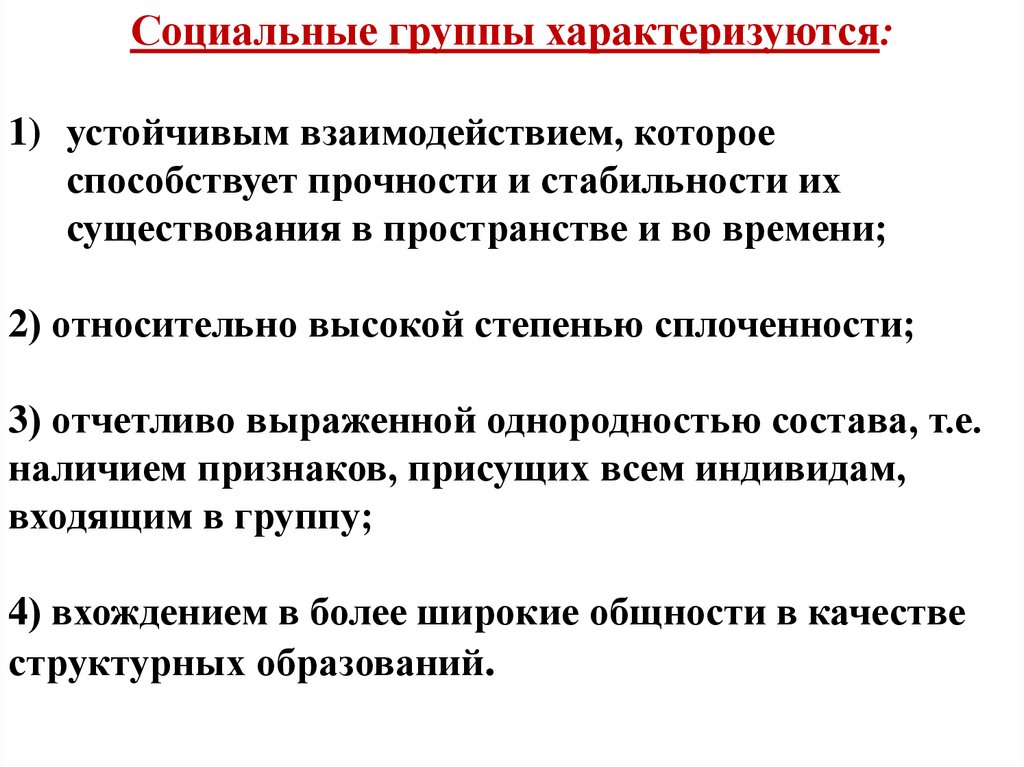 Социальные группы характеризуются:1) устойчивым взаимодействием, которое